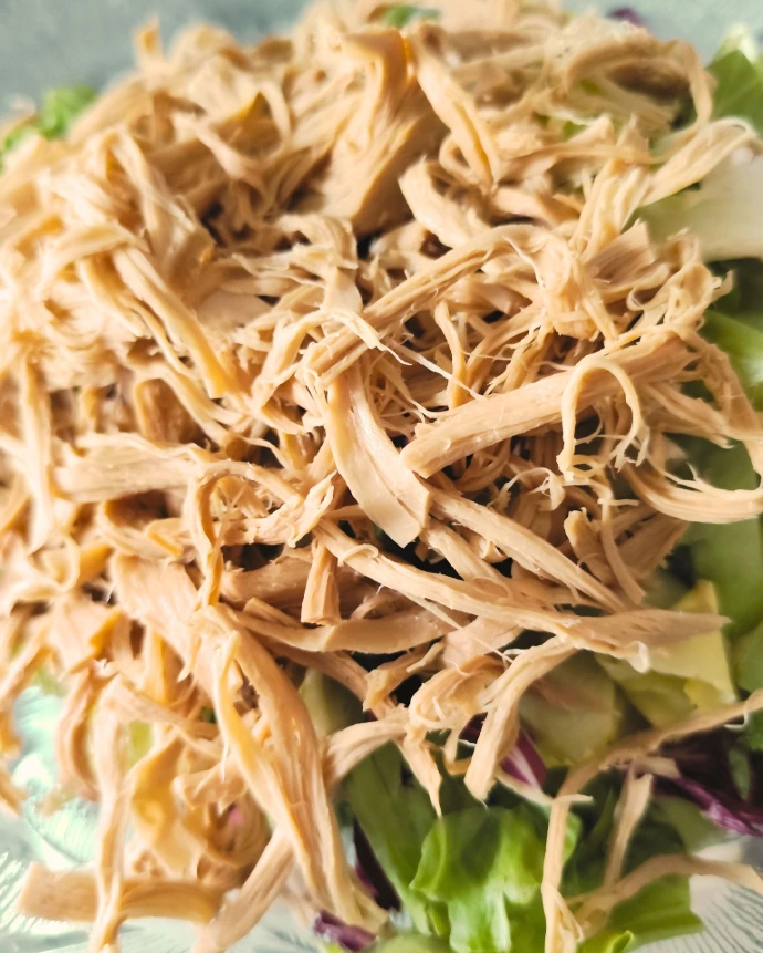 Aportando 29g de proteínas por cada 100g/150kcal. Otros productos plant-based tipo pollo no llegan ni a 20g. La pechuga de pollo cocida se sitúa en 23-25g.
